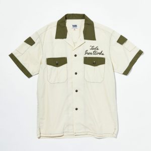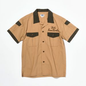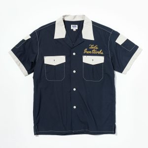 ボーリングシャツ定番のチェーンステッチ刺繍にくわえ、